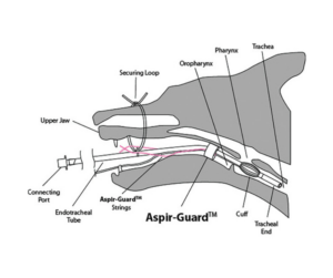 Den donut liknande Aspir-Guard ringen träs på endotrachealtuben och förhindrar därmed oavsiktlig aspiration av vätska och tandbitar vid tandprocedurer.