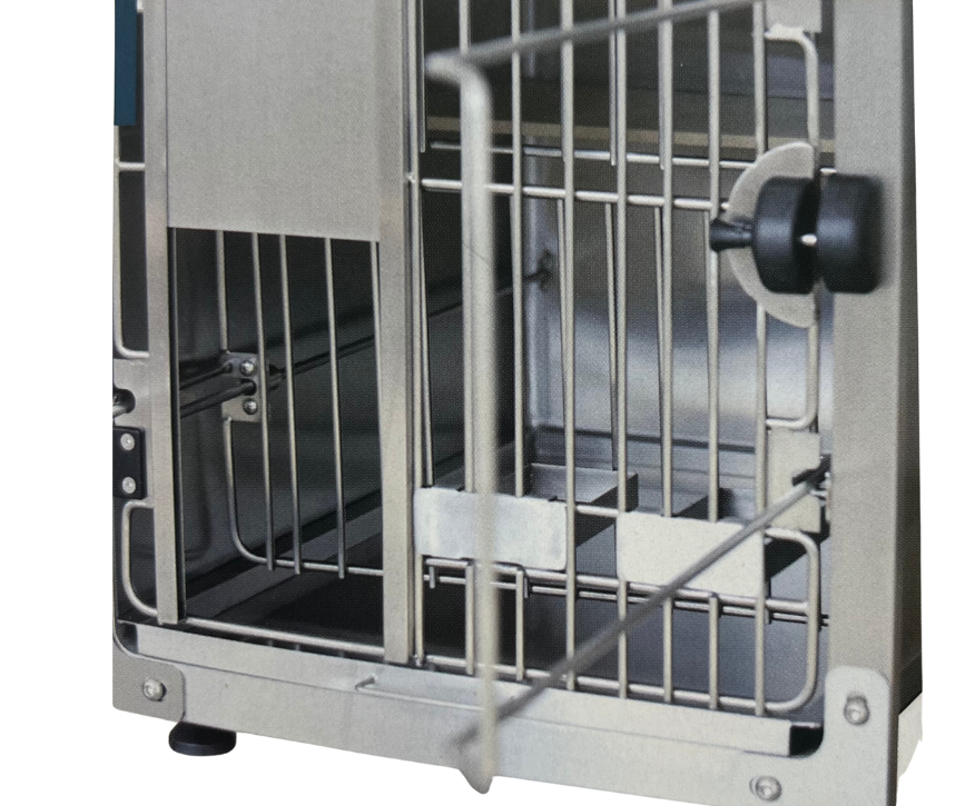 Kattbur i kompakt design tillverkad i högkvalitativ rostfritt stål. Tack vare det glidbara tvångsgallret kan katten stressfritt, enkelt och säkert hållas på plats under undersökningar och behandlingar utan att orsaka skada.