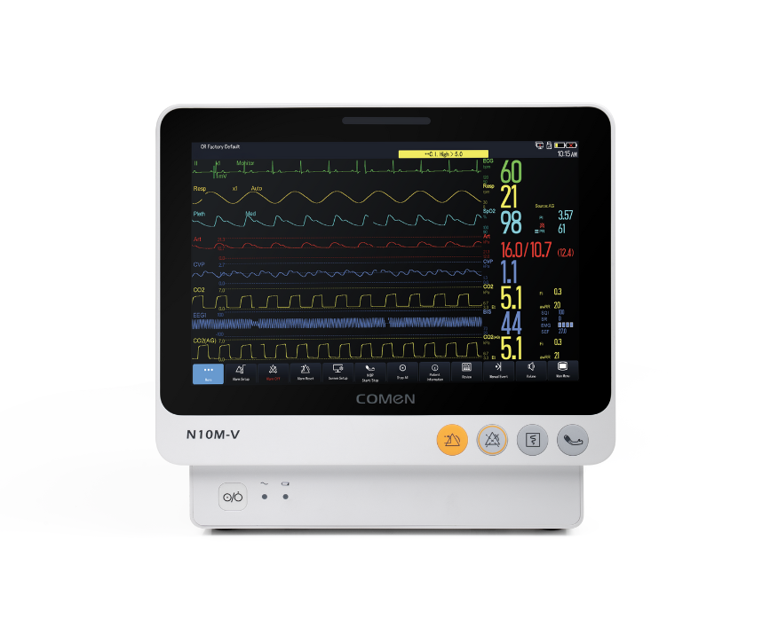 Monitor N10M-V med Masimo EtCO2 modul och AG+O2 är en avancerad och användarvänlig patientmonitor från Comen, framtagen för veterinärt bruk. Övervakningsmonitorn kombinerar tydlig visualisering med omfattande mätparametrar, vilket gör den idealisk för såväl smådjur som stordjur. Tack vare sin plug-and-play design kan monitorn enkelt utökas med olika moduler och parametrar efter klinikens behov.