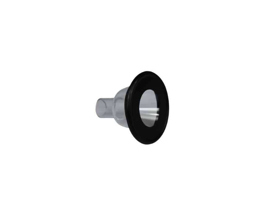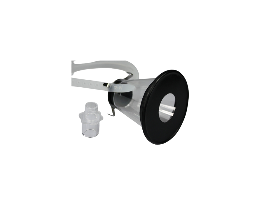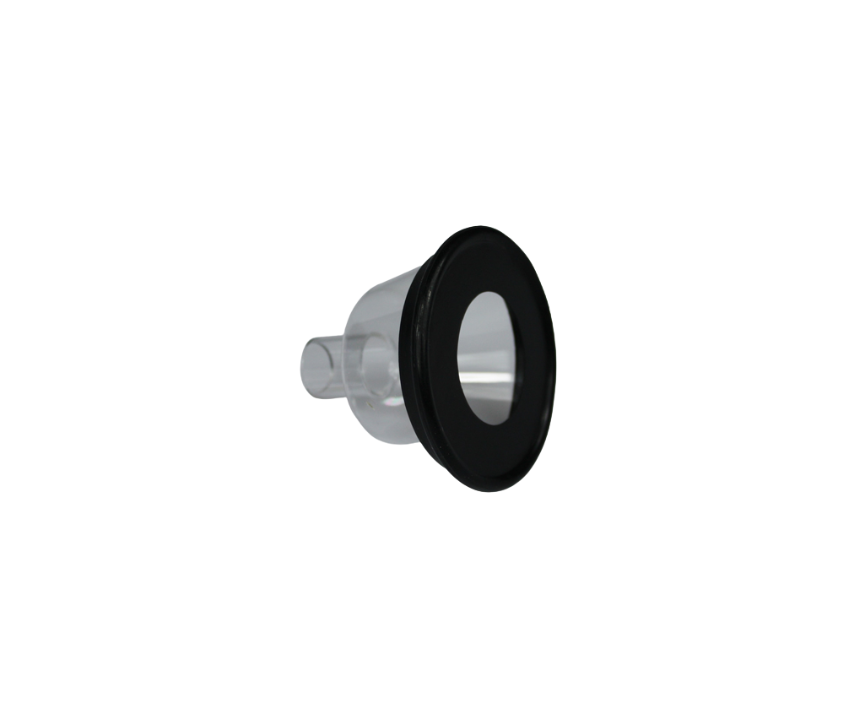 Gjord av robust plastmaterial med gummipackning för att få god tätning mot patienten
