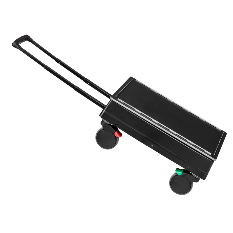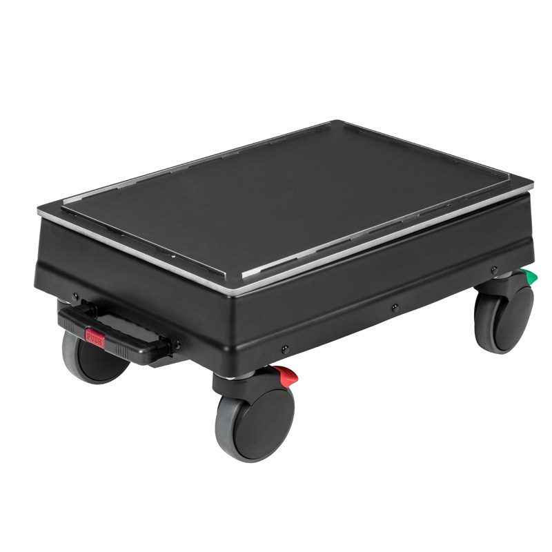 Höjdjusterbar vagn för både små och stora maskiner/utrustningar. Vagnen har 4 individuellt låsbara hjul och förvaringsutrymme i bottenbehållaren.