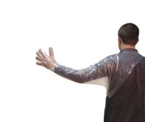 Transparenta rektalhandskar med axelskydd, täcker hela armen samt sitter ordentligt säkrat tack vare förankringen du drar över huvudet.