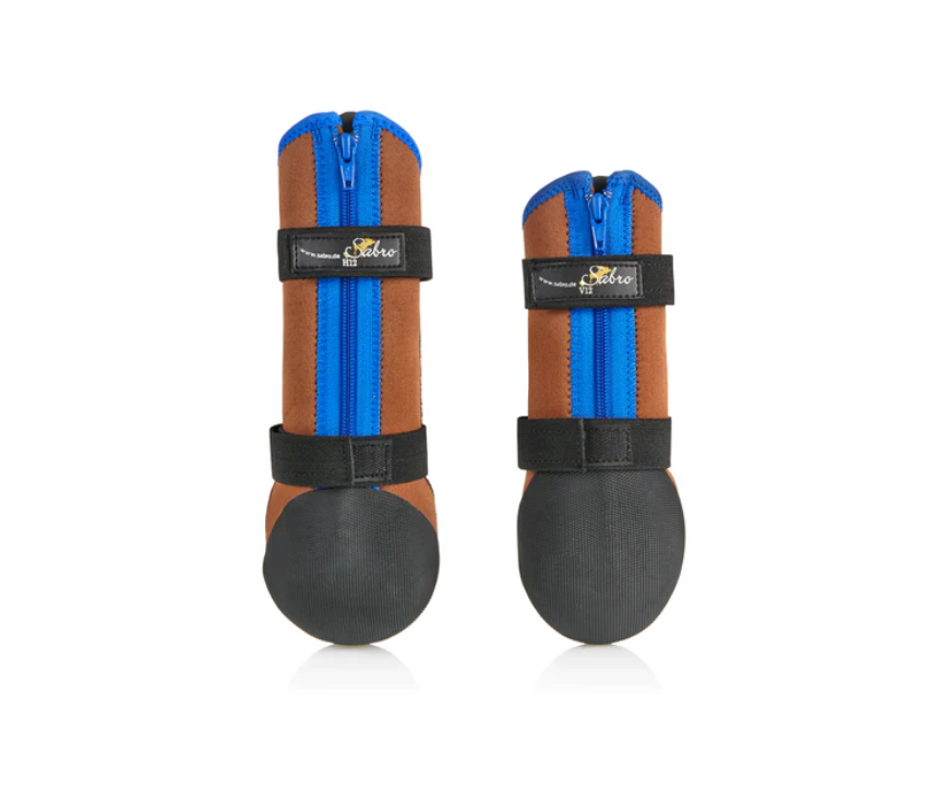 Sabro förbandsko ”anatomisk” passform, vattenavstötande, kraftig sula, materialet ”andas”, har blixtlås och elastisk kardborreknäppning.