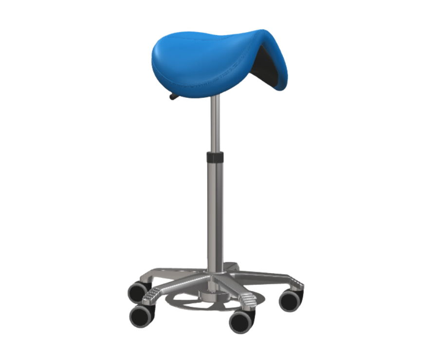 Sadelstol Jumper med extra höjd och fotaktivator, med en 43cm bred polstrad sadel klädd i konstläder.