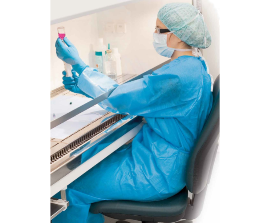 Rocken är färgkodad blå och testad enligt (PSA) 89/686/EEC för användning som personligt skydd vid cytostatikahantering.