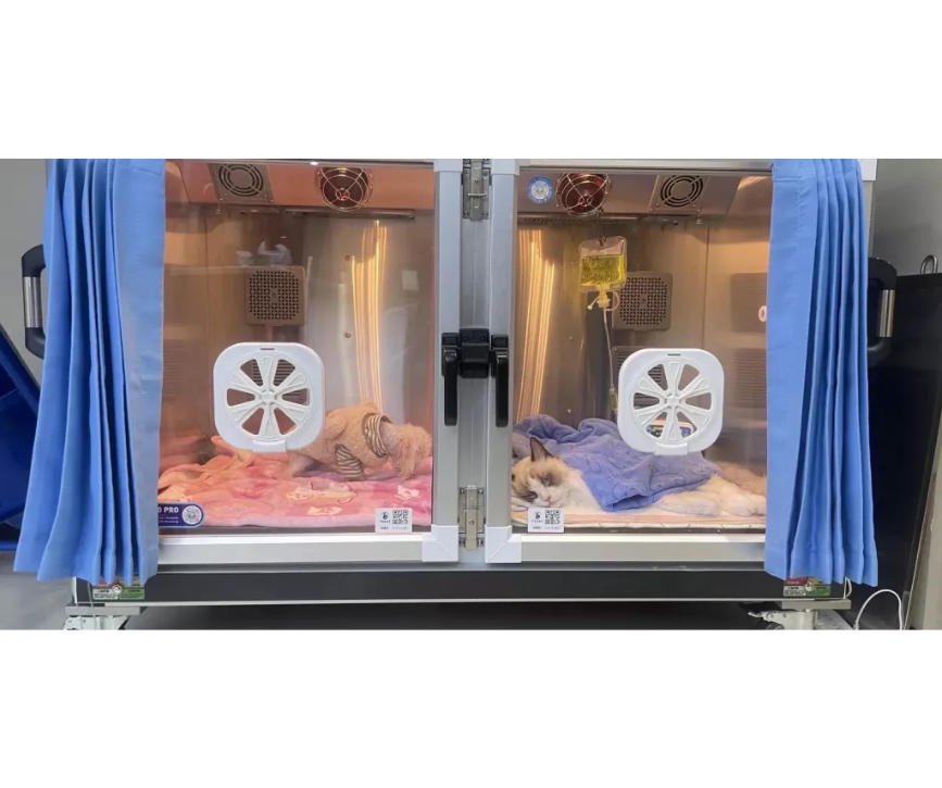 Syrgasbur KaniStar UC-2008D, designad för optimal vård och återhämtning av djur i kritiskt tillstånd. Denna mobila intensivvårdsenhet är idealisk för postoperativ återhämtning, akutvård, andnöd och kroniska tillstånd som exempelvis artrit, samt erbjuder precision i syrekoncentration, temperaturkontroll och luftfuktighetsinställningar.