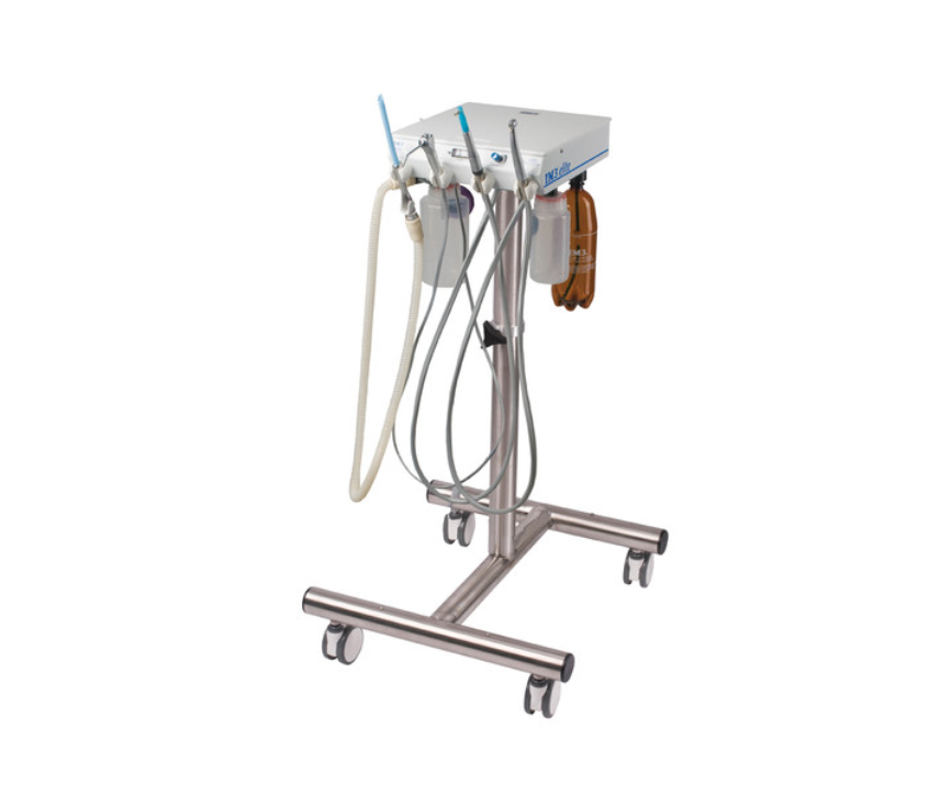 Tanduniten är mobil på fyra hjul och har justerbar höjd, välj antingen med eller utan kompressor. Båda omfattas av High Speed swivel och Low Speed SW ”slow water” -handstycken.