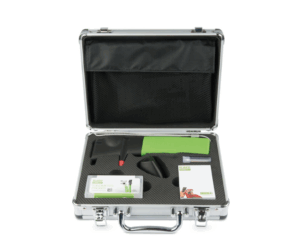 Levereras i en aluminiumväska förutom TonoVet , engångsprober 100st , AA batterier 4st, handledsrem, bordsstativ, USB och snabbmanual