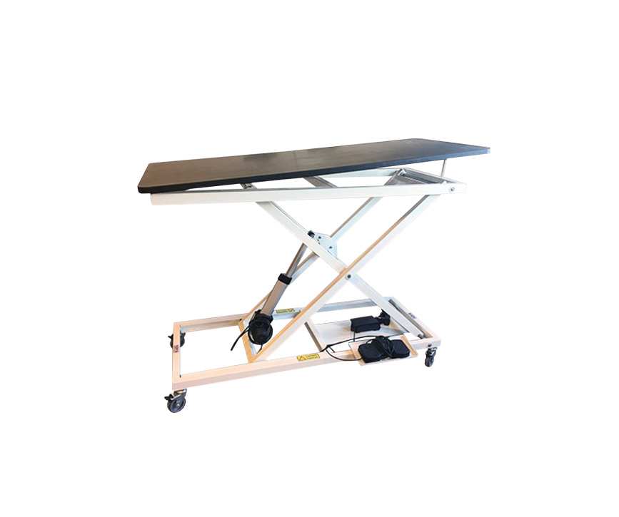 Svensktillverkat batteridrivet undersökningsbord, har elektrisk höj/sänknings funktion som manövreras med fotpedal. Bordets lägsta läge är 320mm och högsta höjd är 1070mm ett positionsläge i ena kortändan på bordet medger “tilt”. Konstruktionen bidrar till att göra bordet mycket stabilt. Undersökningsbordet har 4 individuellt låsbara hjul och en gummiklädd skiva med måttet 600x1350mm.